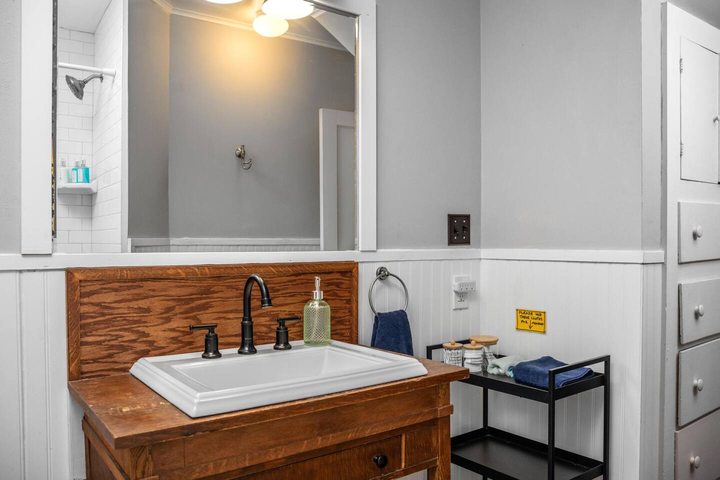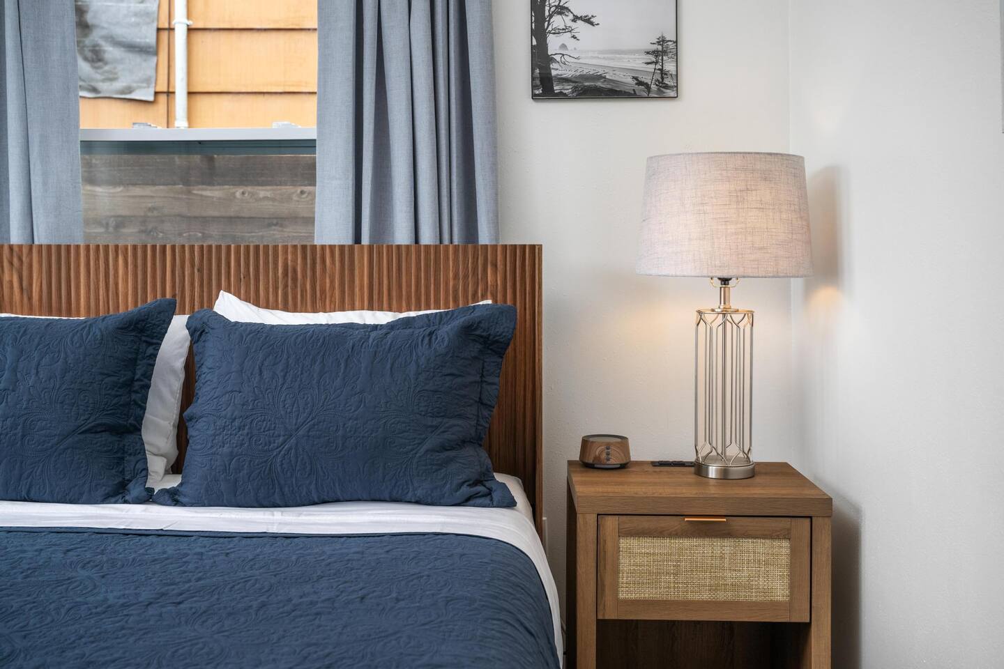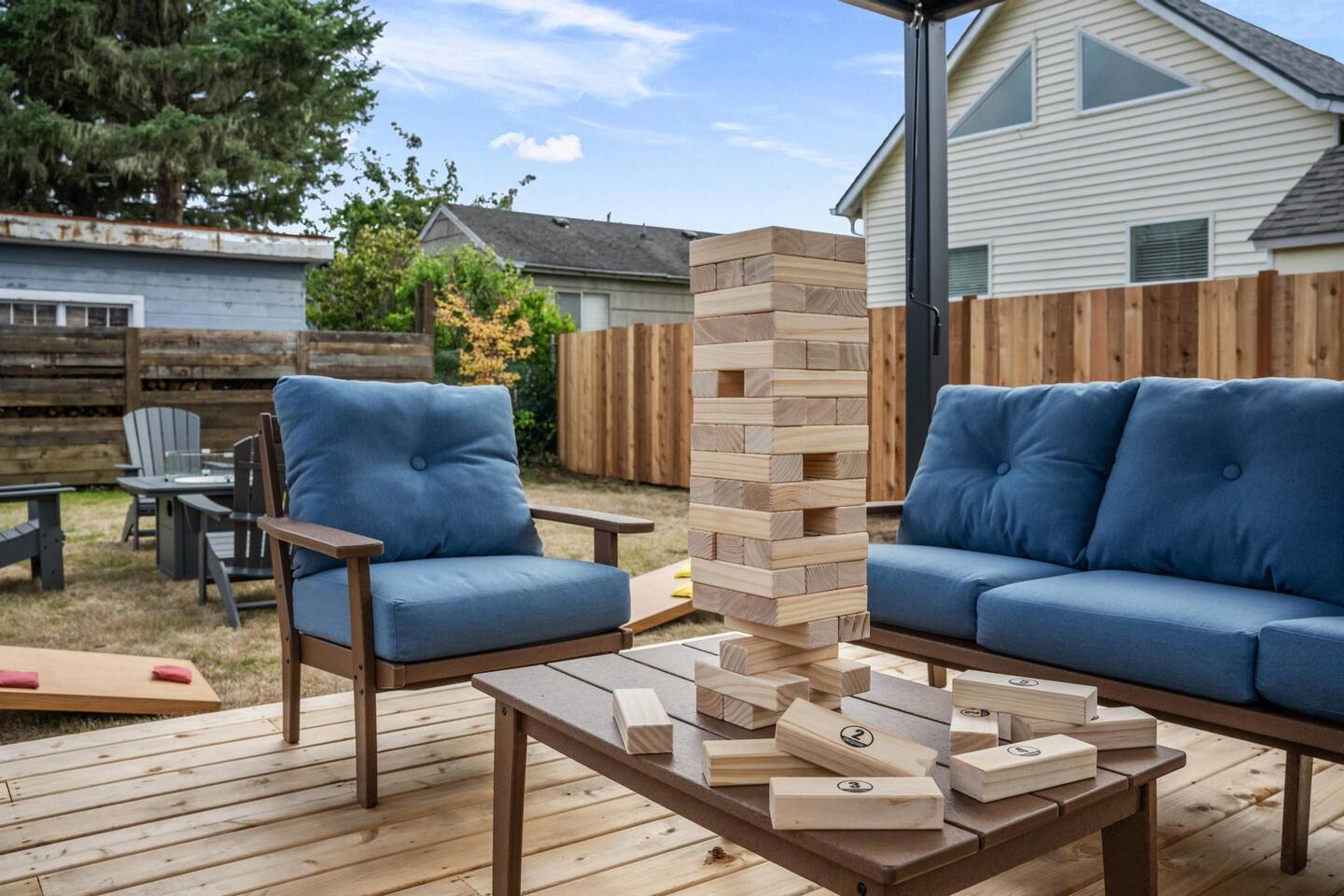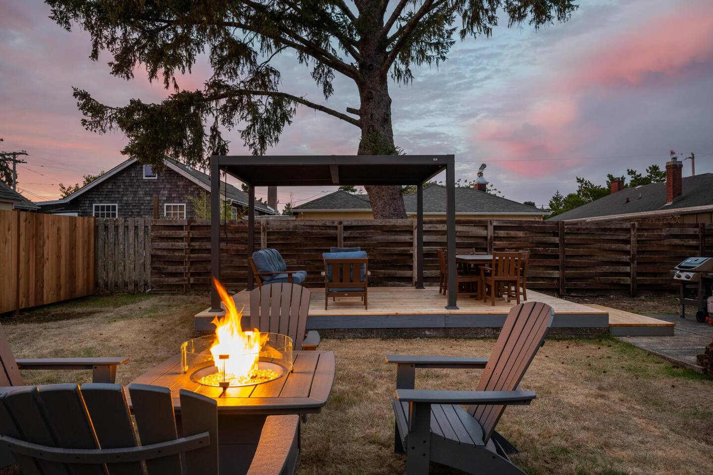Welcome to Seaside Solace, our charming beach cottage, uniquely curated with quirky decorations and newly updated to provide supremely comfortable accommodations. The open plan living/dining area provides a cozy atmosphere for lounging and gathering, whether you're playing board games, enjoying a movie on the 55" smart TV, or relaxing in front of the retro "fireplace", which has been fitted with 1950's lights that replicate flickering flames. Play your music on the bluetooth sound system and enjoy the artistic touches, including a custom wall mural and vintage decorations. Hang out in the beautiful back yard, which has an expansive deck with a louvered pergola that opens and closes to allow all-weather enjoyment. Relax on the comfy lounge furniture and play a game of cornhole or Giant Jenga. Grill burgers on the Weber and eat alfresco at the full dining set, lighting up the area with the rechargeable lanterns. Enjoy evenings around the propane firepit and make s'mores with the provided supplies! We've set up the three bedrooms for relaxation, comfort and convenience. Each room has a queen bed that lifts up for luggage storage and a wardrobe with hangers. We've provided linens, extra blankets, bath and beach towels, and washcloths. Each room is equipped with a white noise machine to help send you off to sleep, and blackout curtains to let you sleep in. Two of the bedrooms have smart TVs. The kitchen is fully equipped with all the cooking utensils and appliances you need to make a feast, including cookie sheets, mixing bowls, a casserole dish and a blender. We've provided oil, spices and seasonings too. The coffee station includes starter supplies of ground coffee and filters, K-cups, sugar/splenda and creamer, and there is a kettle with a selection of teas and hot chocolate. The bathroom features a tiled shower/bathtub with ample water pressure and on-demand hot water. We've provided a range of supplies to make your stay comfortable, including shampoo, conditioner and shower gel, cotton swabs and pads, floss picks and toothbrushes, and makeup cloths and a hair dryer. The full laundry includes a washer and dryer, and there are camp chairs and a beach umbrella to take with you to the beach. We hope you enjoy your stay and encourage you to reach out with any questions or concerns. We're here to make your stay as comfortable as possible. Thank you for choosing to stay at Seaside Solace, we know you'll have a wonderful time!